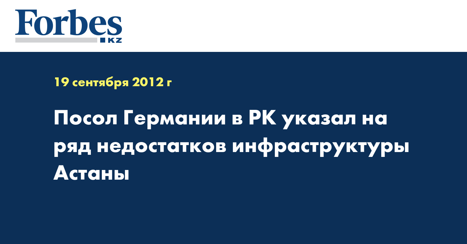 Посол Федеративной Республики Германия в Казахстане Гуидо Херц указал на ряд недостатков инфраструктуры Астаны, передает КазТАГ.