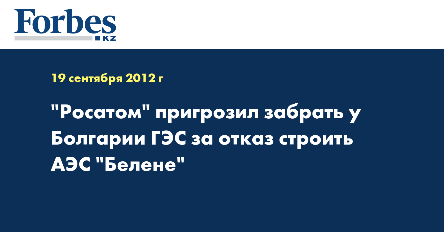 Российская госкорпорация "Росатом" может забрать ГЭС и электросети у Национальной электрической компании Болгарии (НЭК) в качестве компенсации за отказ болгарской стороны от строительства АЭС "Белене". Об этом в номере от 19 сентября пишет газета "Коммерсантъ" во ссылкой на неназванные источники, передает Lenta.ru.