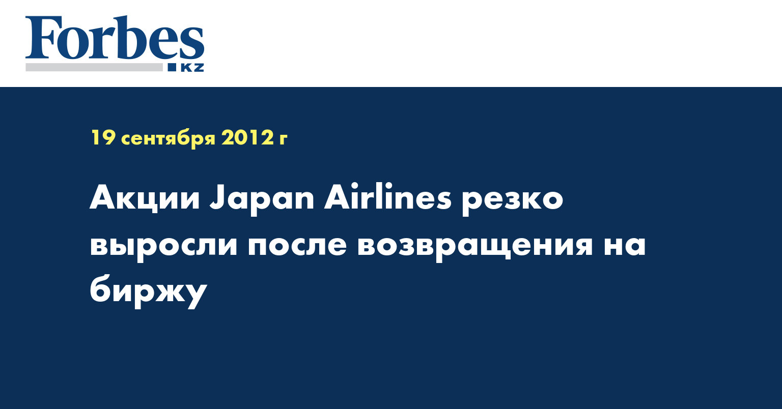 JAL вернулась на биржу после почти трехлетнего перерыва, проведя IPO (первичное размещение акций) на 663 миллиарда иен (8,5 миллиарда долларов). IPO японского перевозчика стало вторым по объему в текущем году после IPO социальной сети Facebook, которая привлекла 16 миллиардов долларов.