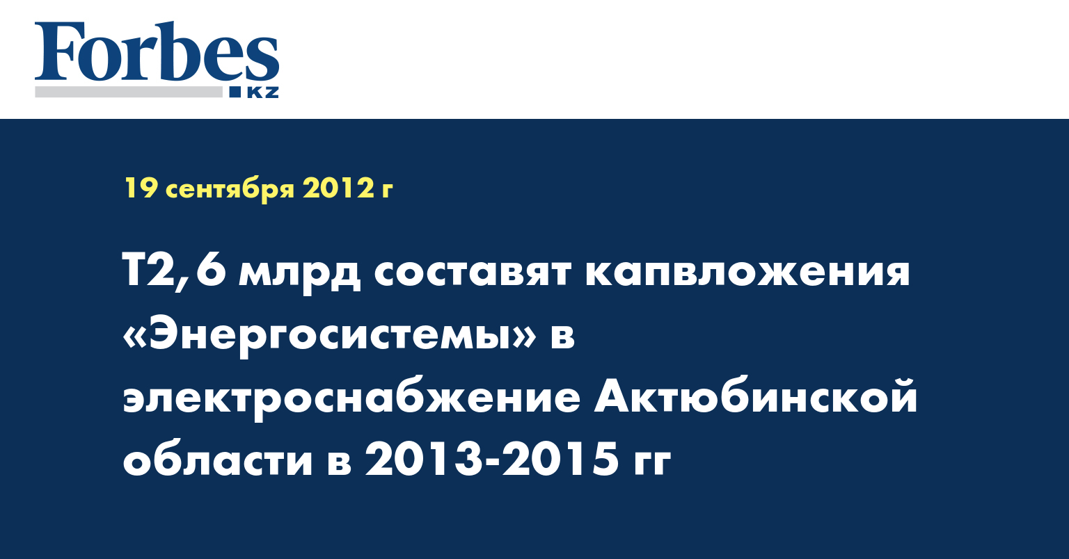 Капитальные вложения ТОО «Энергосистема» в электроснабжение Актюбинской области составят Т2,6 млрд в 2013-2015 годах, указывается в сообщении компании, передает КазТАГ.