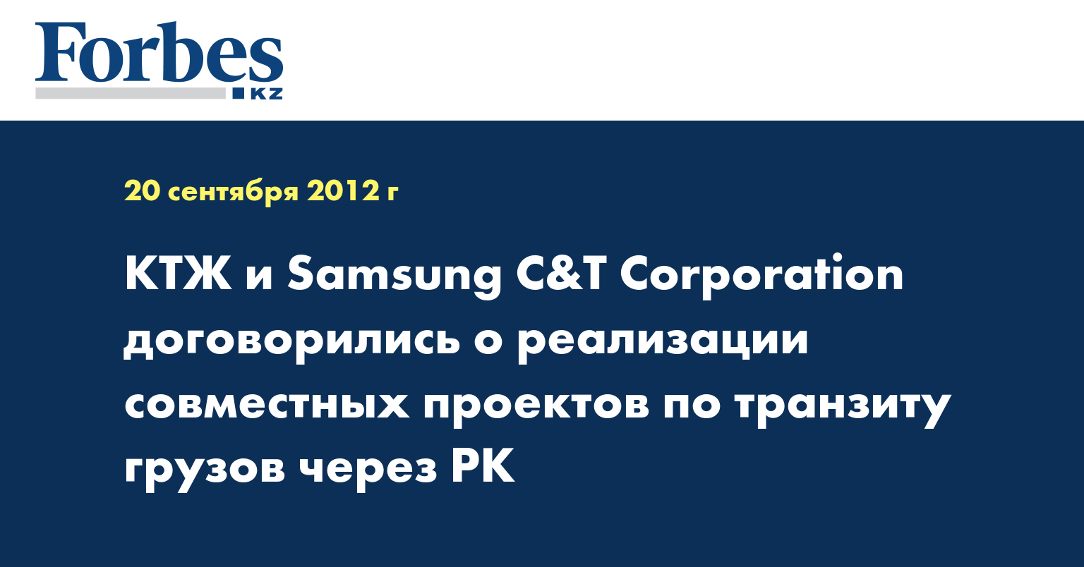 АО «Национальная компания «Казахстан темир жолы» (КТЖ) и компания Samsung C&T Corporation подписали меморандум о реализации совместных проектов по транзиту грузов через Казахстан и участии в логистических проектах в специальной экономической зоне (СЭЗ) «Хоргос», сообщил корреспондент агентства КазТАГ.