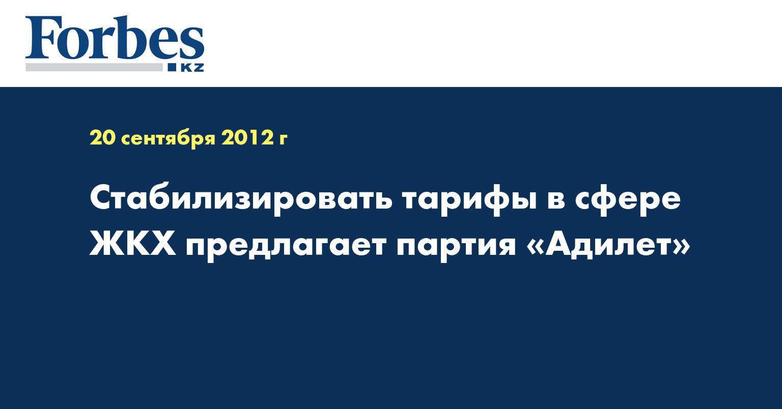 Партия «Адилет» предлагает стабилизировать тарифы в сфере жилищно-коммунального хозяйства (ЖКХ), сообщает КазТАГ.