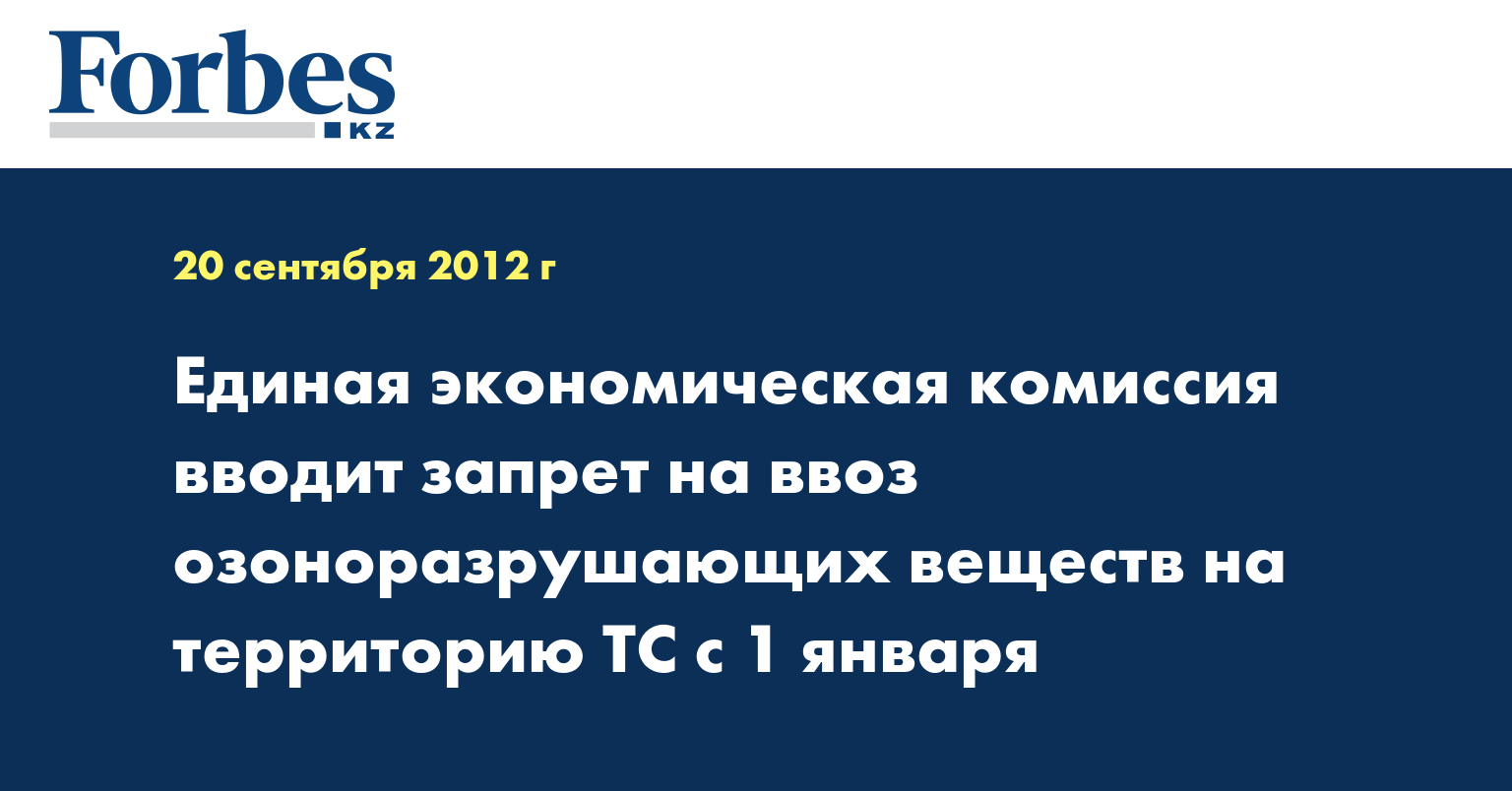 Единая экономическая комиссия (ЕЭК) вводит запрет на ввоз озоноразрушающих веществ и содержащей их продукции на территорию Таможенного союза (ТС) с 1 января 2013 года, говорится в сообщении ЕЭК, передает КазТАГ.