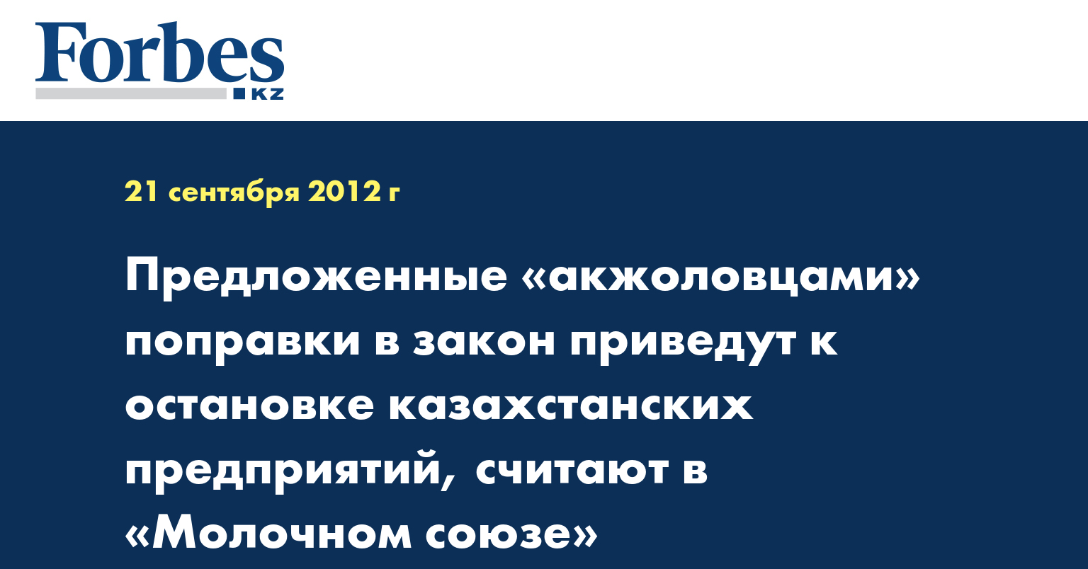 «Насильственное указание на запрет применения стандартов организации с последующим переводом их в национальные стандарты, доступные широкому кругу пользователей, а, следовательно, и конкурентам, не нашло у наших участников понимания и одобрения… Для производителей молочной продукции, которых объединяет наша ассоциация «Молочный союз», это означает фактически остановку производства», - говорится в открытом письме «Молочного союза» депутату мажилиса парламента Азату Перуашеву, распространенном в пятницу, передает КазТАГ.