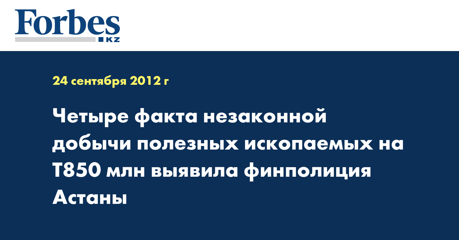 4 факта самовольной добычи полезных ископаемых выявил департамент по борьбе с экономической и коррупционной преступностью Астаны (финполиция), общий ущерб государству составил Т850 млн, сообщила пресс-служба ведомства, передает КазТАГ.