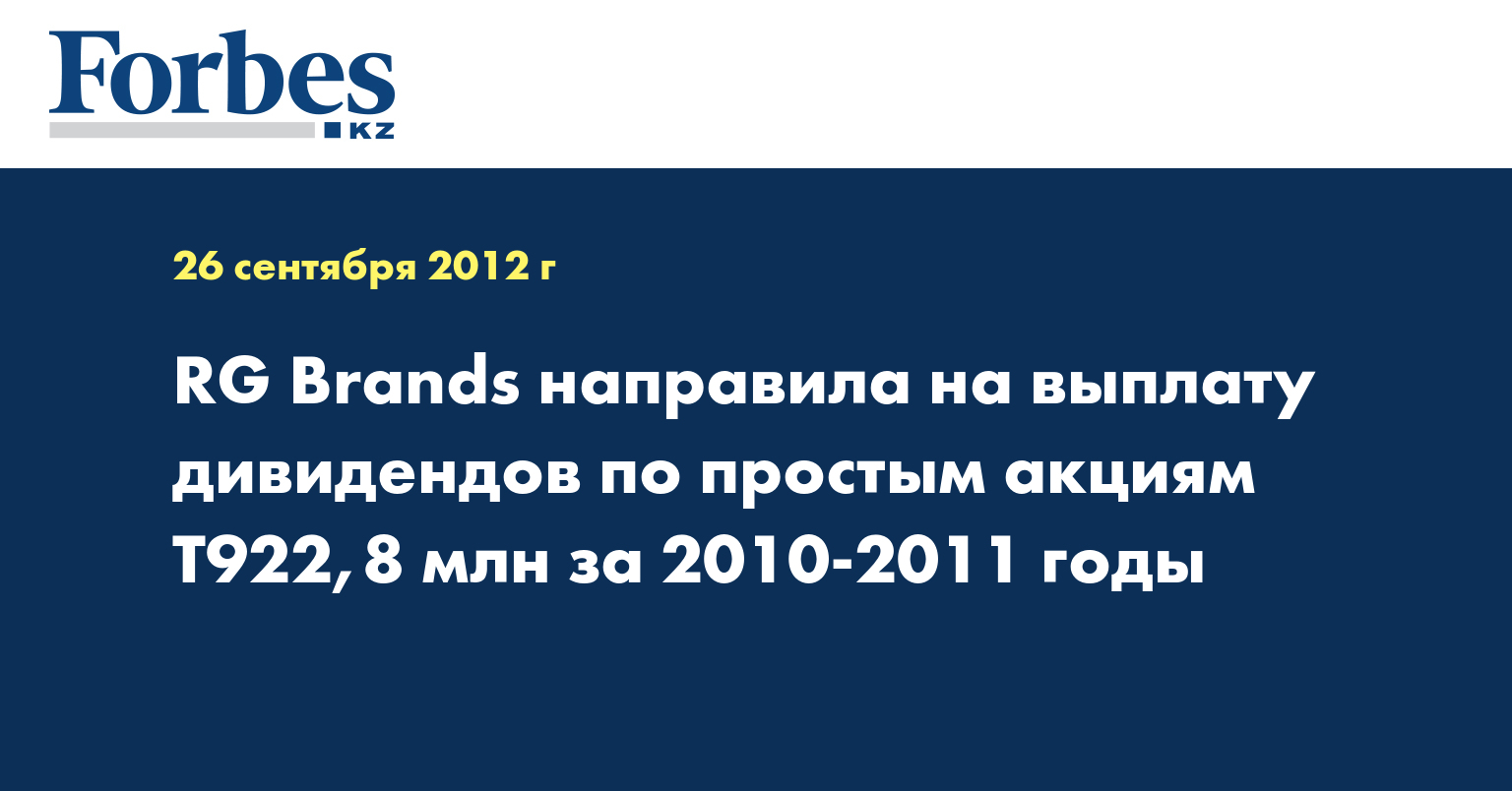 АО «RG Brands» направило на выплату дивидендов по простым акциям Т922,8 млн за 2010 и 2011 годы, указывается в сообщении, опубликованном на сайте Казахстанской фондовой биржи в среду, передает КазТАГ.