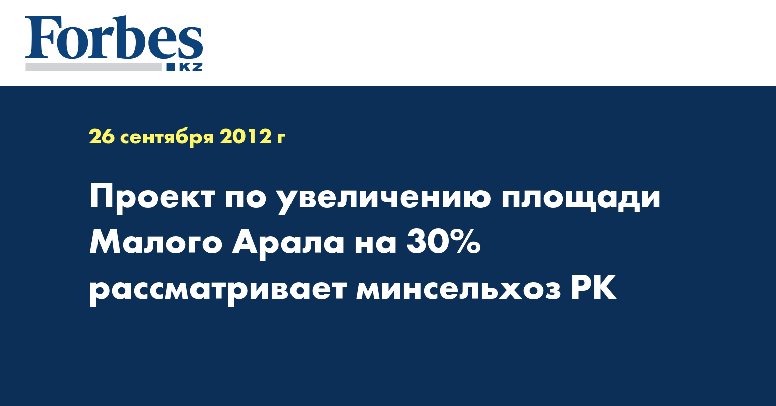 В министерстве сельского хозяйства (МСХ) РК рассматривается проект по увеличению площади Малого Арала на 30%.