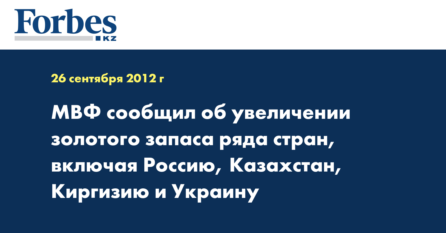 Международный валютный фонд /МВФ/ сообщил об увеличении в июле золотого запаса ряда стран, включая Россию, Казахстан, Киргизию и Украину. По его данным, Москва закупила на внутреннем рынке 18,6 тонны драгоценного металла и довела свои резервы до 936,6 тонны. Астана нарастила их до 103 тонн, Киев - до 33 тонн, Бишкек - до 2,8 тонны.
