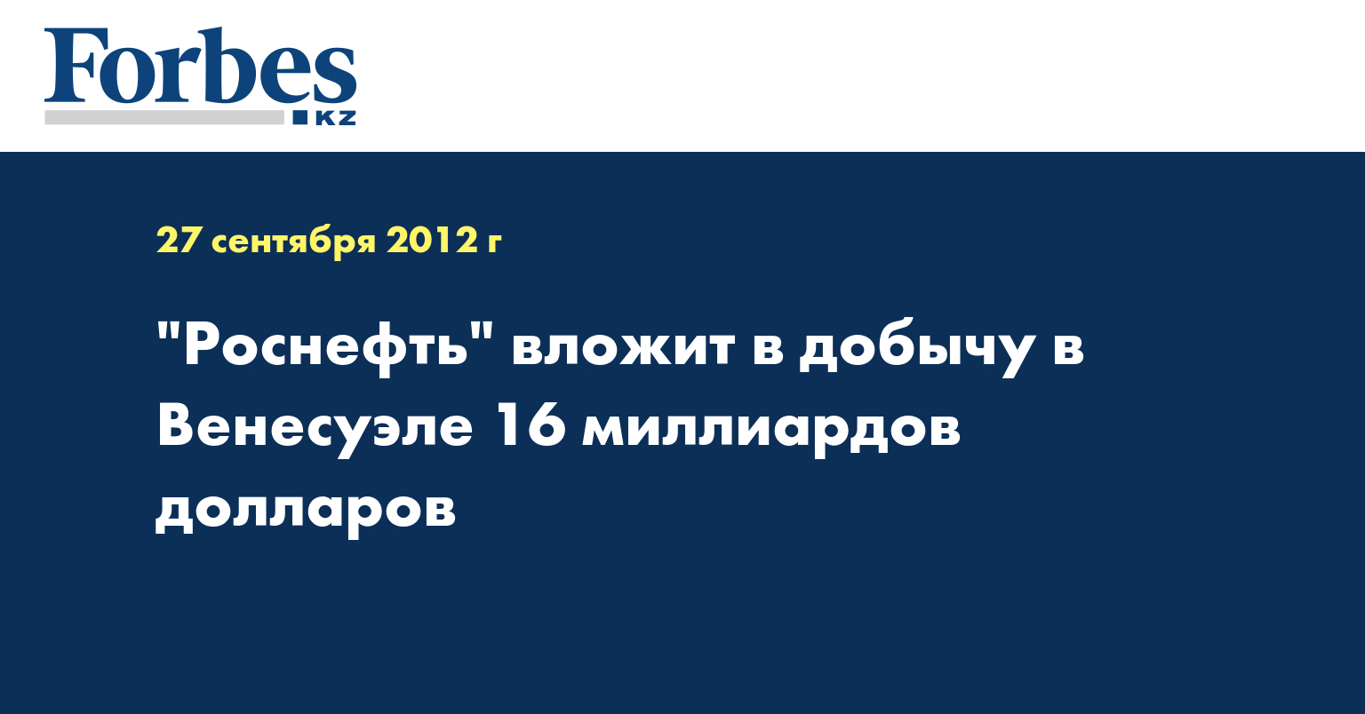 Инвестиции российской нефтедобывающей компании "Роснефть" в разработку блока "Карабобо-2" в Венесуэле составят 16 миллиардов долларов. Об этом сообщает РИА Новости со ссылкой на президента компании Игоря Сечина, передает Lenta.ru.