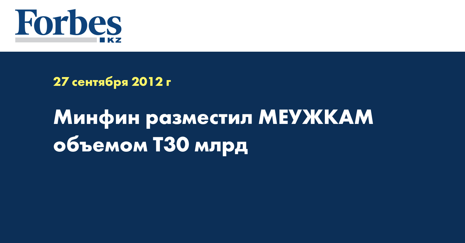 «Министерство финансов Казахстана разместило на KASE 27 сентября 30 млн МЕУЖКАМ-228 шестого выпуска… с маржой 0,01% годовых над уровнем инфляции», - говорится в сообщении, опубликованном на сайте биржи в четверг.
