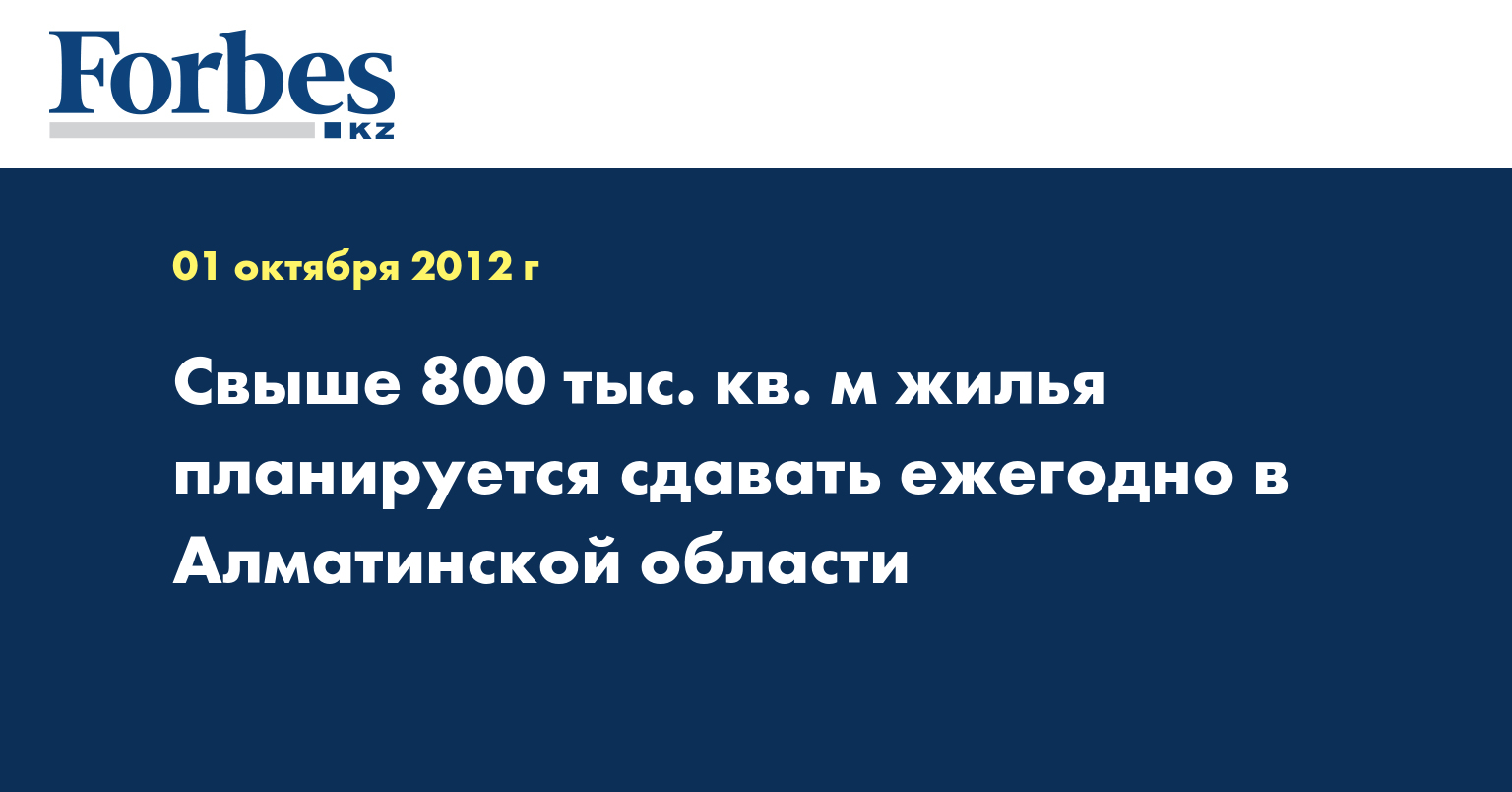 Свыше 800 тыс. кв. м жилья планируется сдавать ежегодно в Алматинской области, сообщили корреспонденту КазТАГ в региональном отделении «Жилстройсбербанка».
