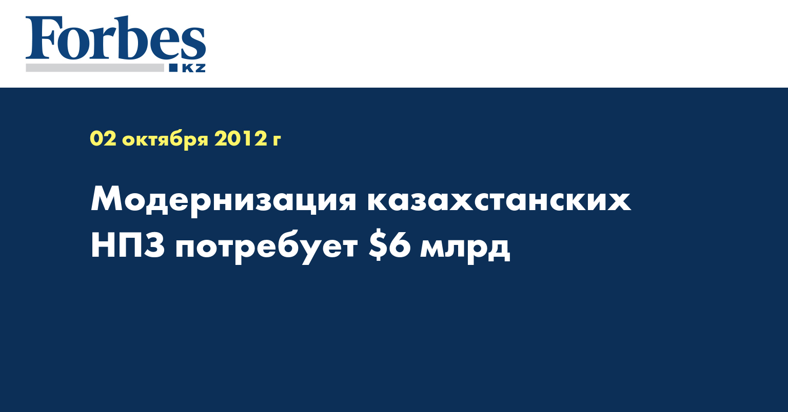 Более $6 млрд инвестиций потребует модернизация казахстанских нефтеперерабатывающих заводов (НПЗ), сообщил председатель правления АО «Национальная компания «КазМунайГаз» (КМГ) Ляззат Киинов.