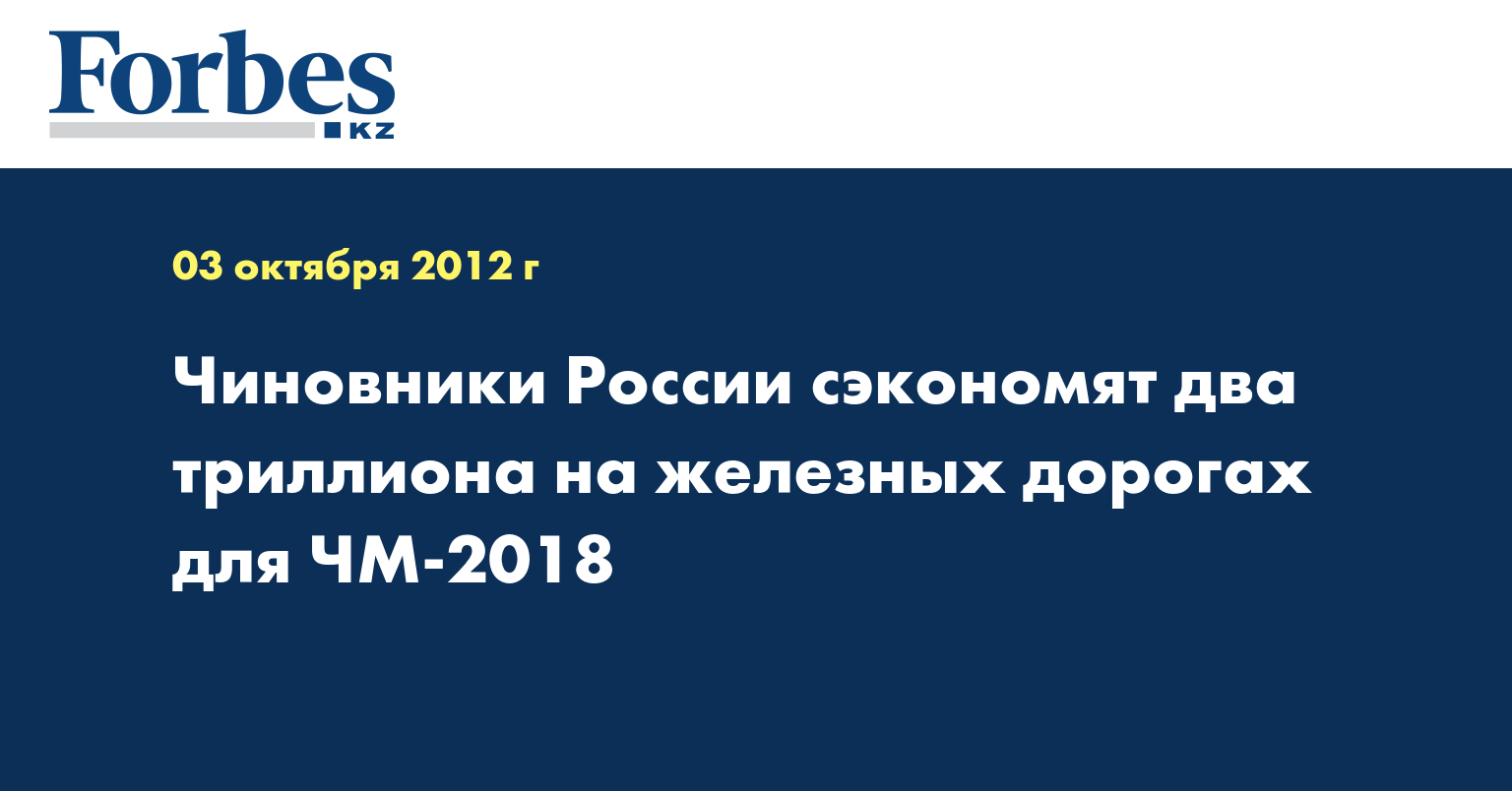 В свою очередь, РЖД просила у правительства на строительство скоростных и высокоскоростных железнодорожных магистралей 2,6 триллиона рублей, сообщает Lenta.ru. По плану Минтранса, для проведения чемпионата будет достаточно построить скоростные трассы Москва - Нижний Новгород - Казань - Екатеринбург (76,8 миллиарда рублей в ценах 2010 года), а также Москва - Харьков - Ростов-на-Дону - Краснодар - Адлер (210 миллиардов).