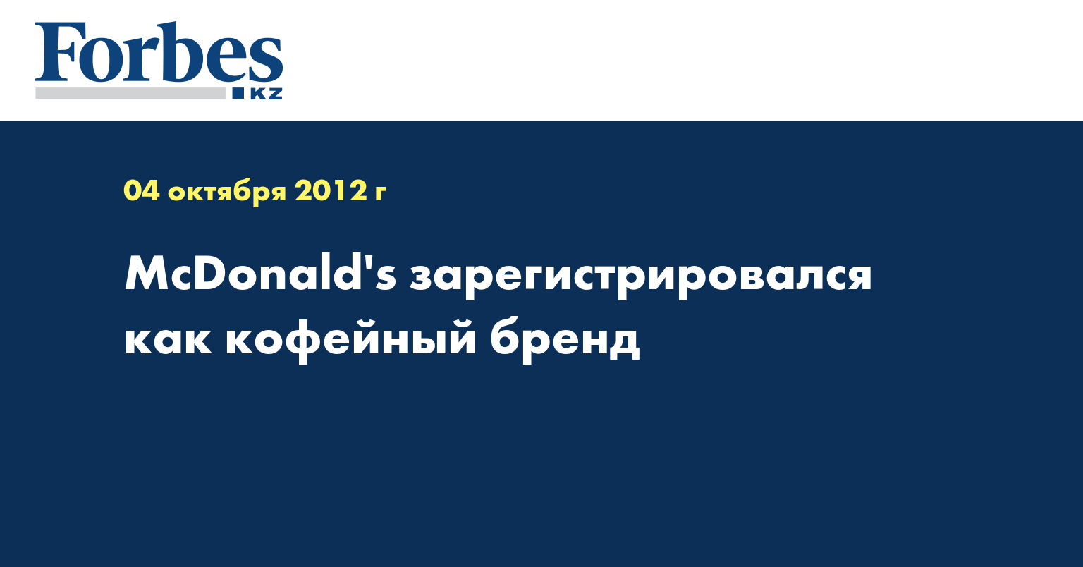 Одна из крупнейших в мире сетей ресторанов быстрого питания McDonald's зарегистрировала в Бюро по патентам и товарным знакам США (U.S. Patent and Trademark Office) собственный бренд по продаже зернового и молотого кофе. Как пишет газета The Wall Street Journal, компания, скорее всего, пытается не отставать от сети кофеен Dunkin' Donuts, которая уже продает пакетированный кофе под своей торговой маркой, сообщает Lenta.ru.