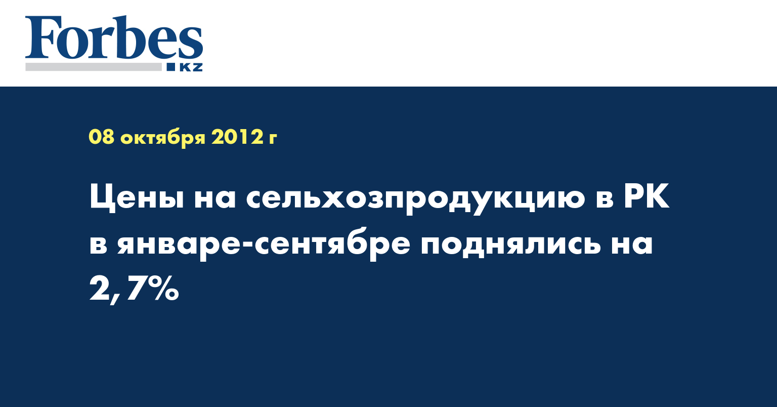Цены на реализованную продукцию сельского хозяйства в Казахстане в январе-сентябре повысились на 2,7%, указывается в сообщении агентства РК по статистике. Его процитировал КазТАГ.