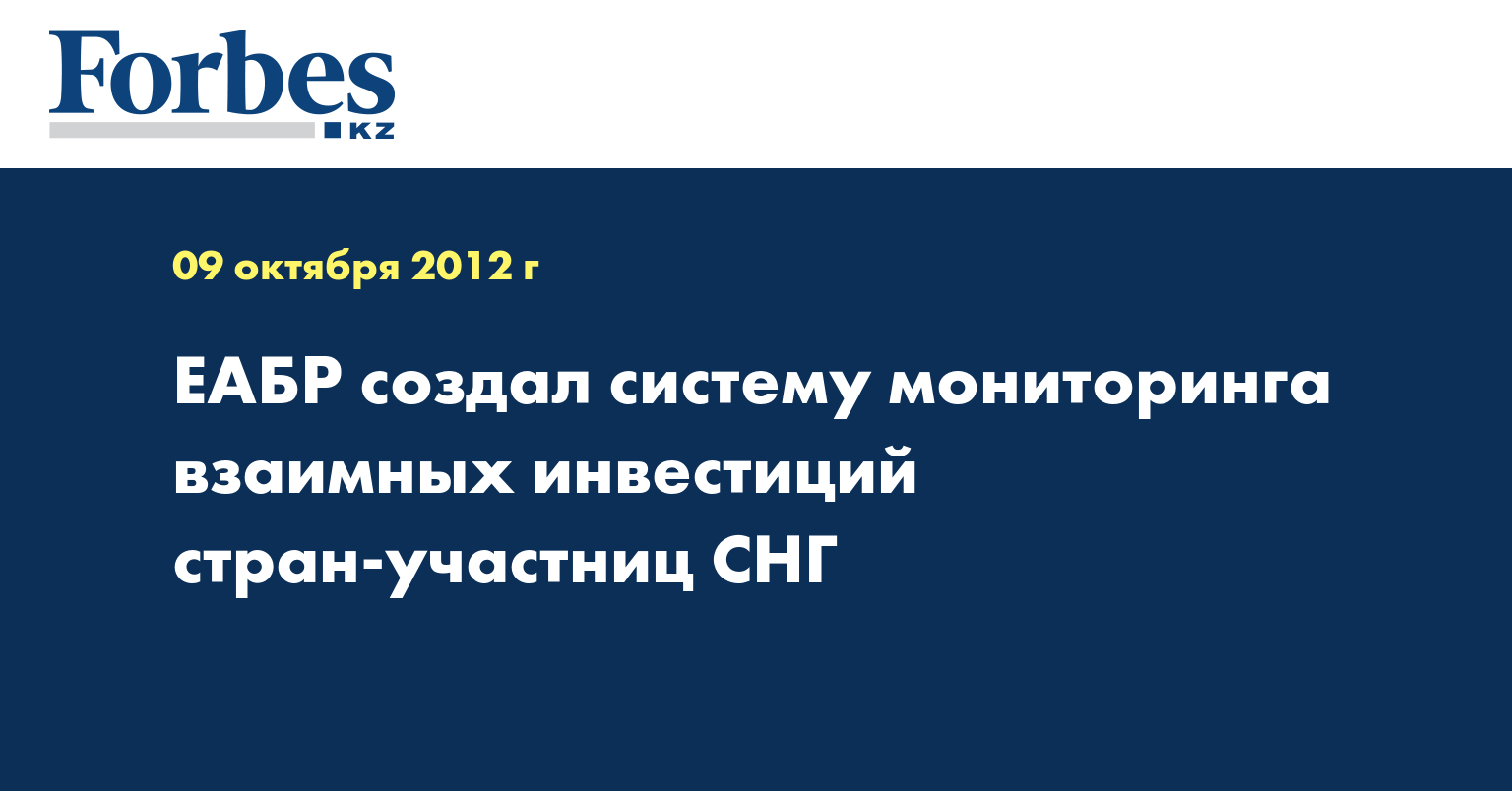 «ЕАБР создал систему мониторинга взаимных инвестиций в СНГ», - указывается в информации пресс-службы банка, распространенной КазТАГ во вторник.