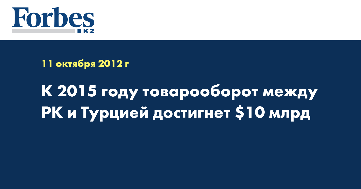 Объем товарооборота между Казахстаном и Турцией достигнет к 2015 году $10 млрд, сообщил официальный Twitter-аккаунт Ак орды, передает КазТАГ.