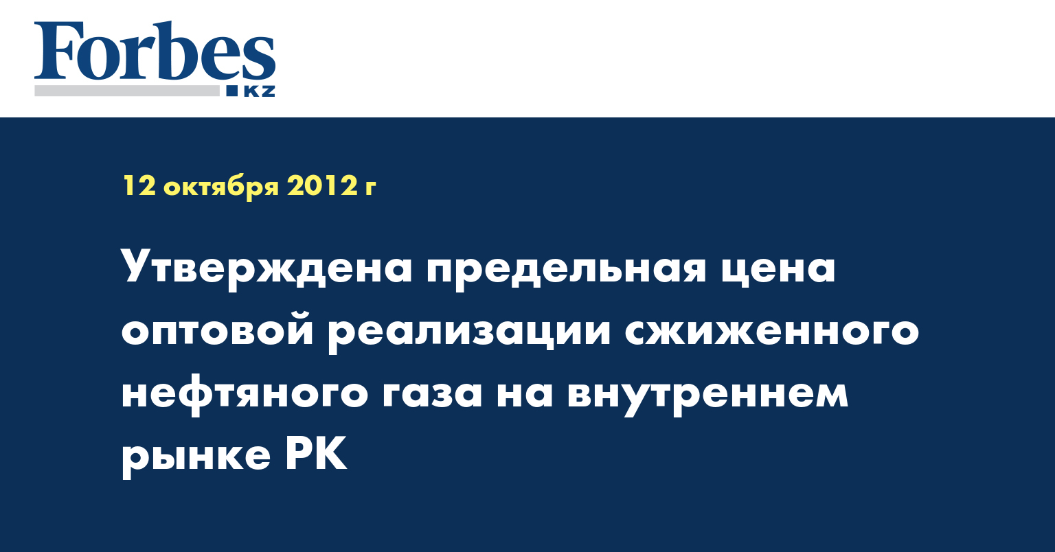 «В соответствии с подпунктом 6 статьи 5 закона РК от 9 января 2012 года «О газе и газоснабжении» правительство РК постановляет утвердить предельную цену оптовой реализации сжиженного нефтяного газа на внутреннем рынке РК на период по 31 декабря 2012 года в размере 35 805 тенге за тонну без учета налога на добавленную стоимость», - говорится в опубликованном в пятницу документе.
