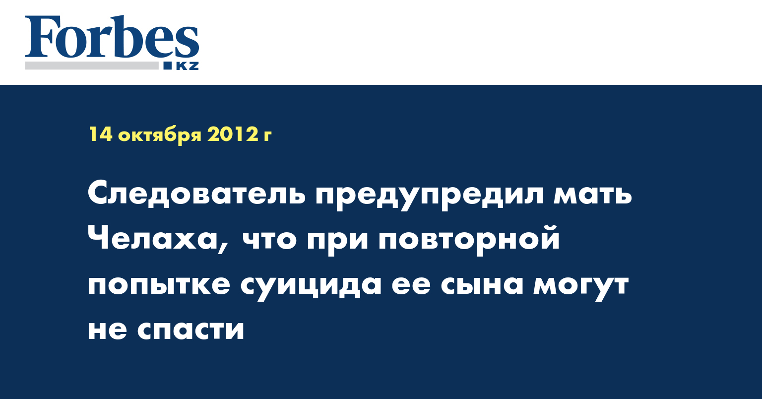 Как сообщалось, 11 октября около 16 часов постовым внутреннего поста учреждения ЛА-155/16 при очередном осмотре камер было обнаружено, что следственно-арестованный В. Челах пытался путем привязывания спортивных брюк к оконной решетке совершить самоубийство. Администрацией учреждения были приняты профилактические меры, данный факт зарегистрирован в Книге учета заявлений и информации департамента внутренних дел Алматинской области, сотрудниками которого в настоящее время проводятся проверочные мероприятия.