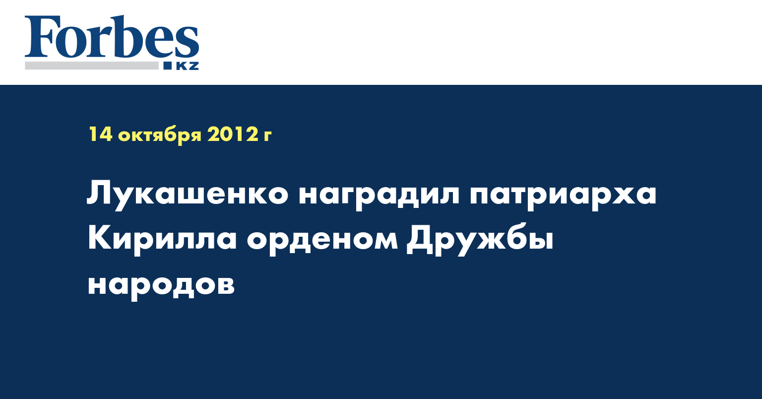 Президент Белоруссии Александр Лукашенко в воскресенье, 14 октября, вручил патриарху Московскому и всея Руси Кириллу белорусский орден Дружбы народов. Об этом сообщает "Лента.ру" со ссылкой на РИА Новости. Вручение награды состоялось во время визита патриарха в Минск, куда он прибыл для участия в празднике Покрова Пресвятой Богородицы.