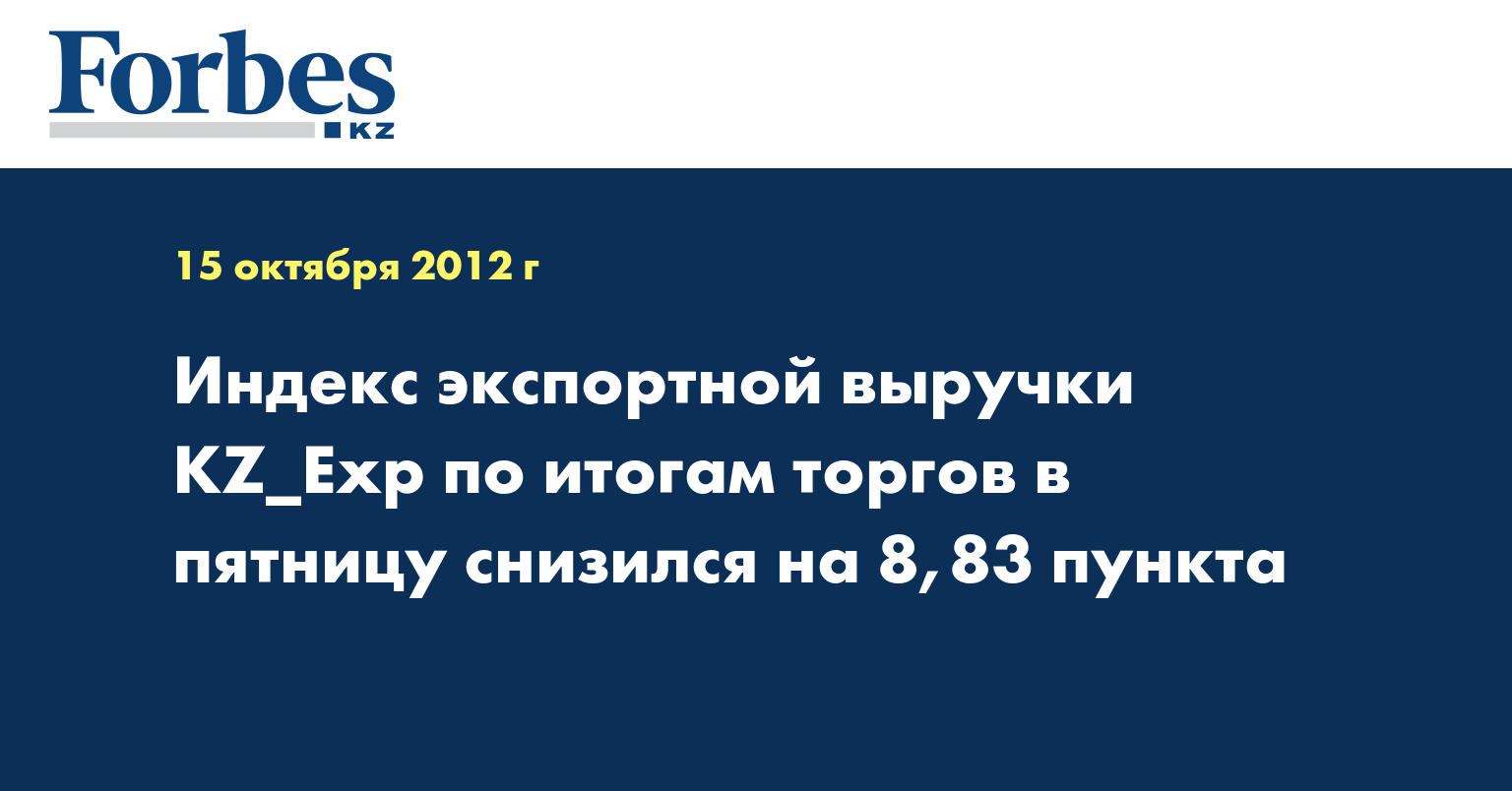 Индекс экспортной выручки по основным экспортным товарам KZ_Exp по итогам торгов в пятницу составил 969,69 пункта, передает КазТАГ.