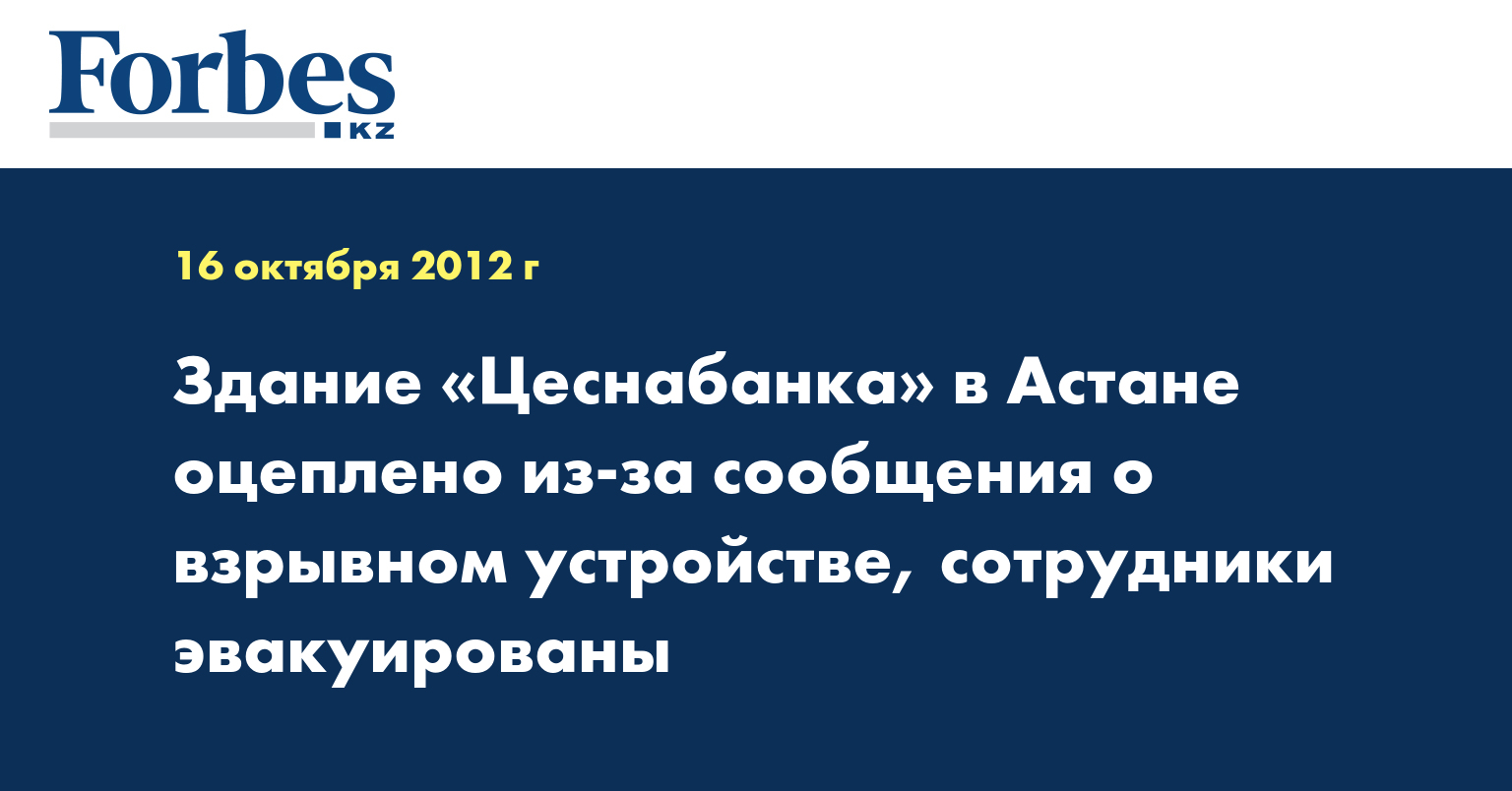 В Астане здание, где находятся главный офис «Цеснабанка» и газета «Инфо-Цес», оцеплено полицией; все сотрудники эвакуированы в связи с сообщением о взрывном устройстве, сообщил КазТАГ сотрудник газеты Денис Курганников.
