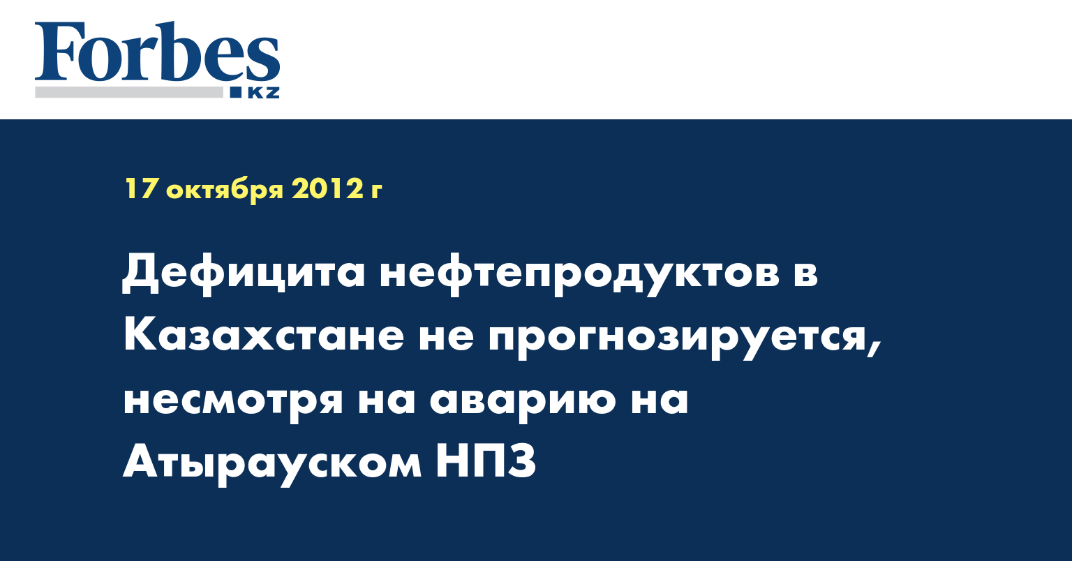 Несмотря на аварию на Атырауском НПЗ, дефицита нефтепродуктов не прогнозируется, сообщили в министерстве нефти и газа (МНГ).