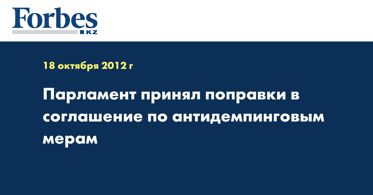 Сенат РК на пленарном заседании в четверг принял закон «О ратификации протокола о внесении изменений и дополнений в соглашение о применении специальных защитных, антидемпинговых и компенсационных мер по отношению к третьим странам от 25 января 2008 года», приводящего национальное законодательство РК в соответствие с нормами Всемирной торговой организации (ВТО) и Таможенного союза (ТС).