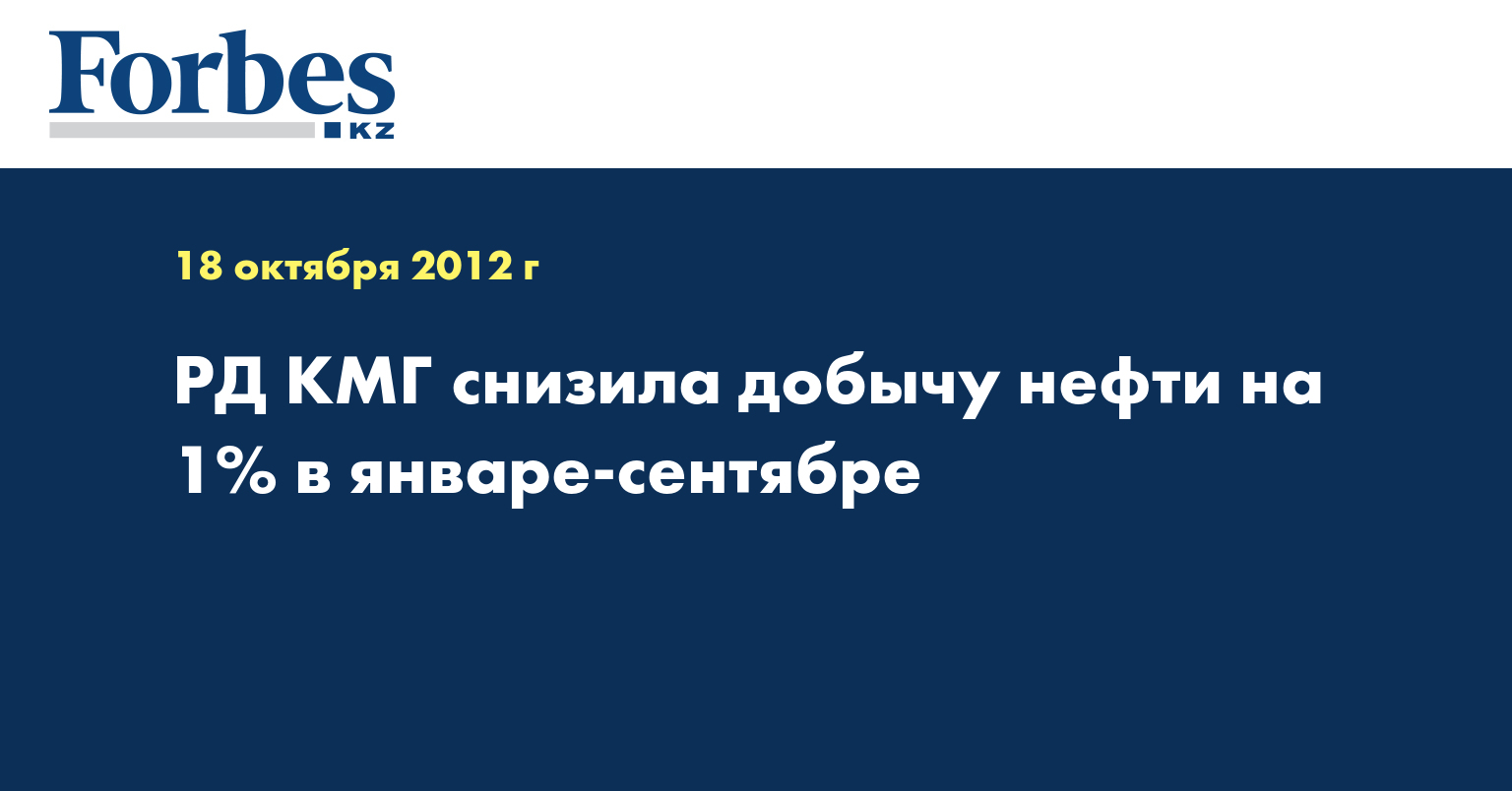 «РД КМГ с учетом долей в ТОО «СП «Казгермунай» (КГМ), CCEL и «ПетроКазахстан Инк.» (ПКИ) за девять месяцев 2012 года добыло 9 108 тыс. тонн нефти (246 тыс. баррелей в сутки), что на 100 тыс. тонн или на 1% меньше, чем в аналогичном периоде 2011 года», - отмечается в пресс-релизе компании, как передает КазТАГ.