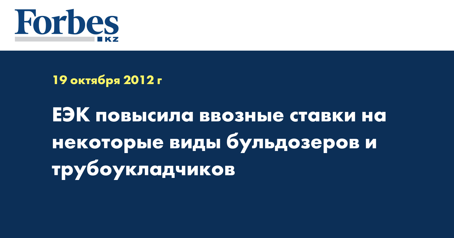 «18 октября 2012 года коллегия Евразийской экономической комиссии приняла решение о повышении ставок ввозных таможенных пошлин на отдельные виды бульдозеров и трубоукладчиков с 0% до 5% от таможенной стоимости», - говорится в распространенном сообщении, передает КазТАГ.