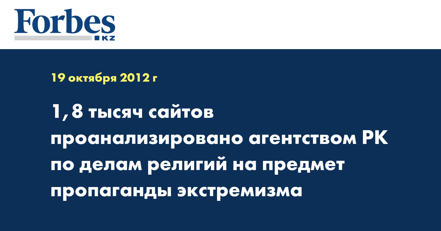 «Ведется работа по мониторингу и блокированию сайтов религиозно-экстремистского характера. За 9 месяцев 2012 года агентством проанализировано содержание более 1,8 тыс. сайтов, по 34 из них материалы направлены в генеральную прокуратуру», - сказал Г. Шойкин на конференции «Предупреждение преступлений и профилактика правонарушений: современное состояние и перспективы совершенствования» в пятницу.