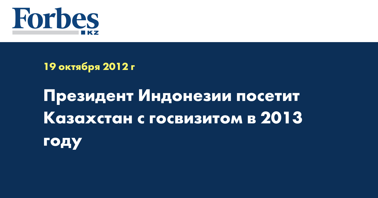 Президент Индонезии Сусило Бамбанг Юдойоно посетит Казахстан с государственным визитом в 2013 году, сообщила пресс-служба министерства иностранных дел РК.