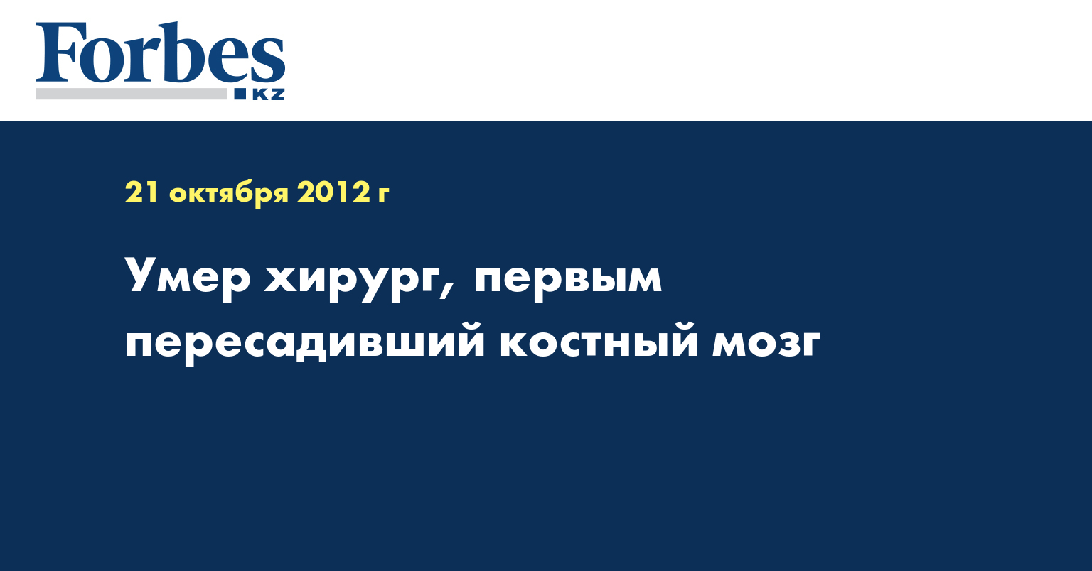 В США скончался лауреат Нобелевской премии в области медицины хирург-трансплантолог Эдуард Донналл Томас, первым осуществившим пересадку костного мозга при лечении рака крови. Об этом сообщает "Лента.ру" со ссылкой на АР.