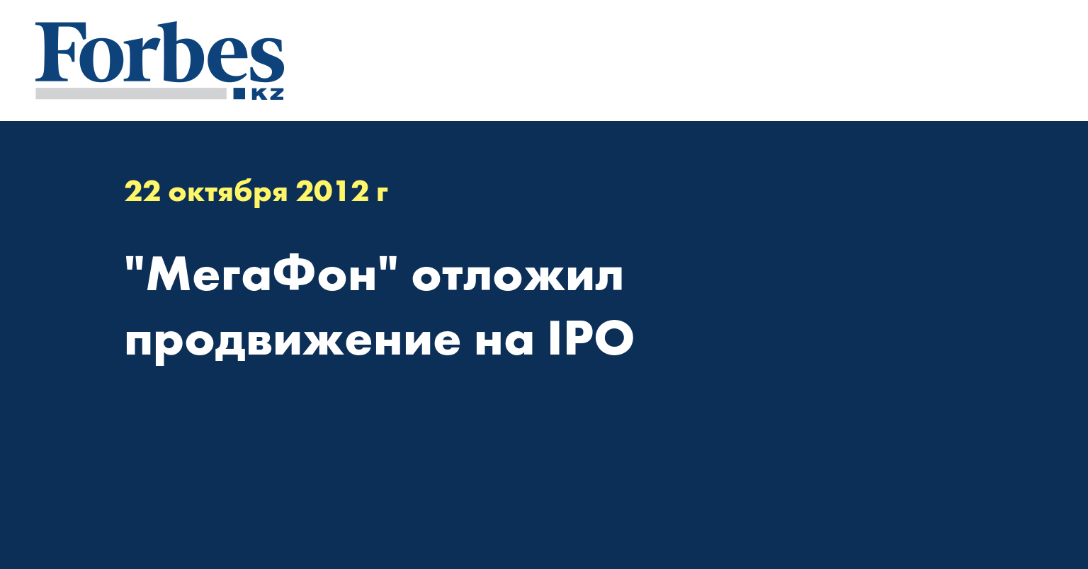 Изначально "МегаФон" планировал продать часть своих акций летом 2012 года, однако из-за нестабильности на фондовых рынках размещение было отложено. В начале октября компания сообщила, что IPO планируется в четвертом квартале. СМИ уточняли, что размещение может состояться 1 ноября.