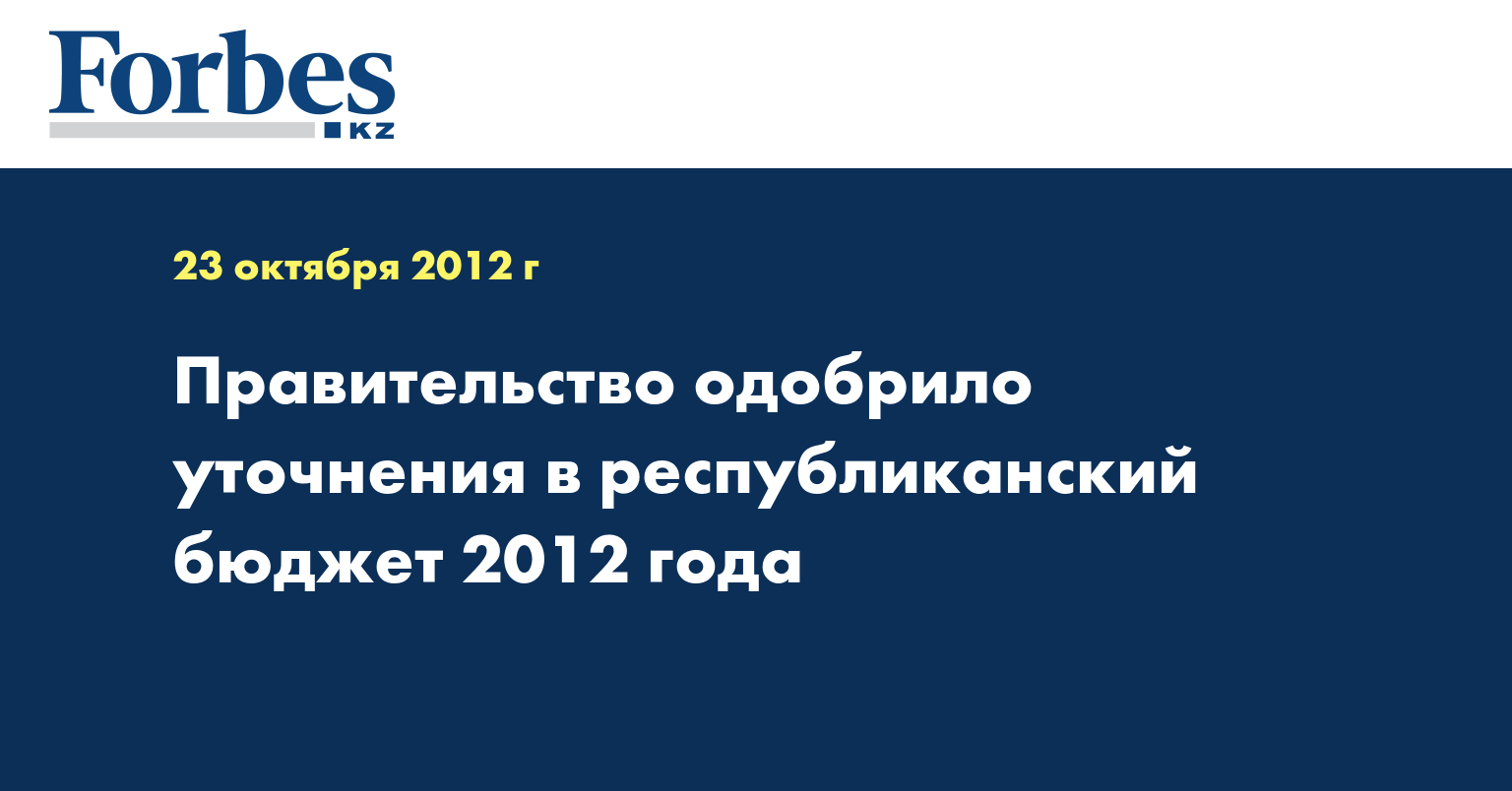 «Проект уточнения предполагает увеличения дефицит до 983 млрд тенге или 3,1% к ВВП ... Расходы республиканского бюджета на 2012 год предусматриваются в сумме 5 трлн 837 млрд тенге со снижением по сравнению с утвержденным бюджетом на 179,5 млрд тенге... Проект также предусматривает перераспределение средств в сумме 72,2 млрд тенге для решения неотложных задач текущего года», - сообщил министр финансов Болат Жамишев на заседании правительства во вторник.