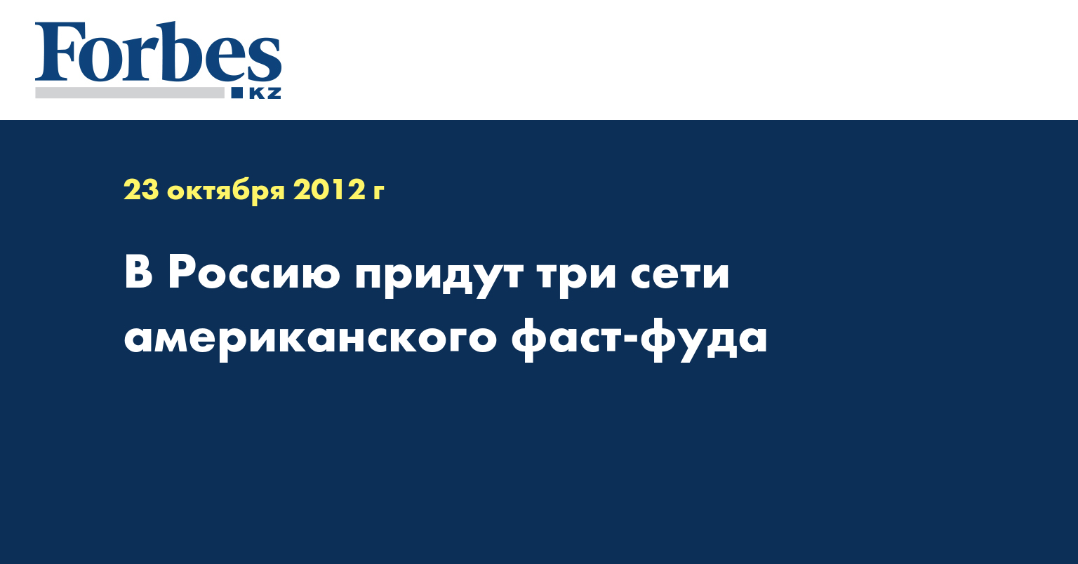 Лидером российского рынка фаст-фуд по числу заведений является американская Subway, которой на конец прошлого года принадлежало 286 ресторанов. На втором месте находился McDonald's с 282 заведениями. В России также работает еще несколько крупных американских сетей фаст-фуда, например, Burger King и KFC.