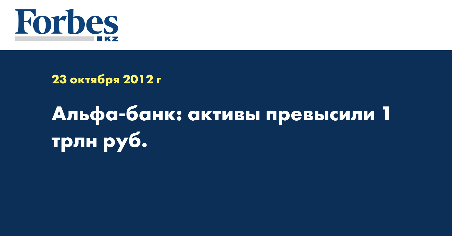 Альфа-банк стал седьмым российским финансовым учреждением, чьи активы преодолели рубеж в триллион долларов. Ранее такого результата уже достигли Сбербанк (сейчас его активы составляют 12,3 триллиона рублей), ВТБ (4,16 триллиона), Газпромбанк (2,7 триллиона), Россельхозбанк (1,5 триллиона), "ВТБ 24" (1,4 триллиона) и Банк Москвы (1,3 триллиона). Все перечисленные банки являются государственными.