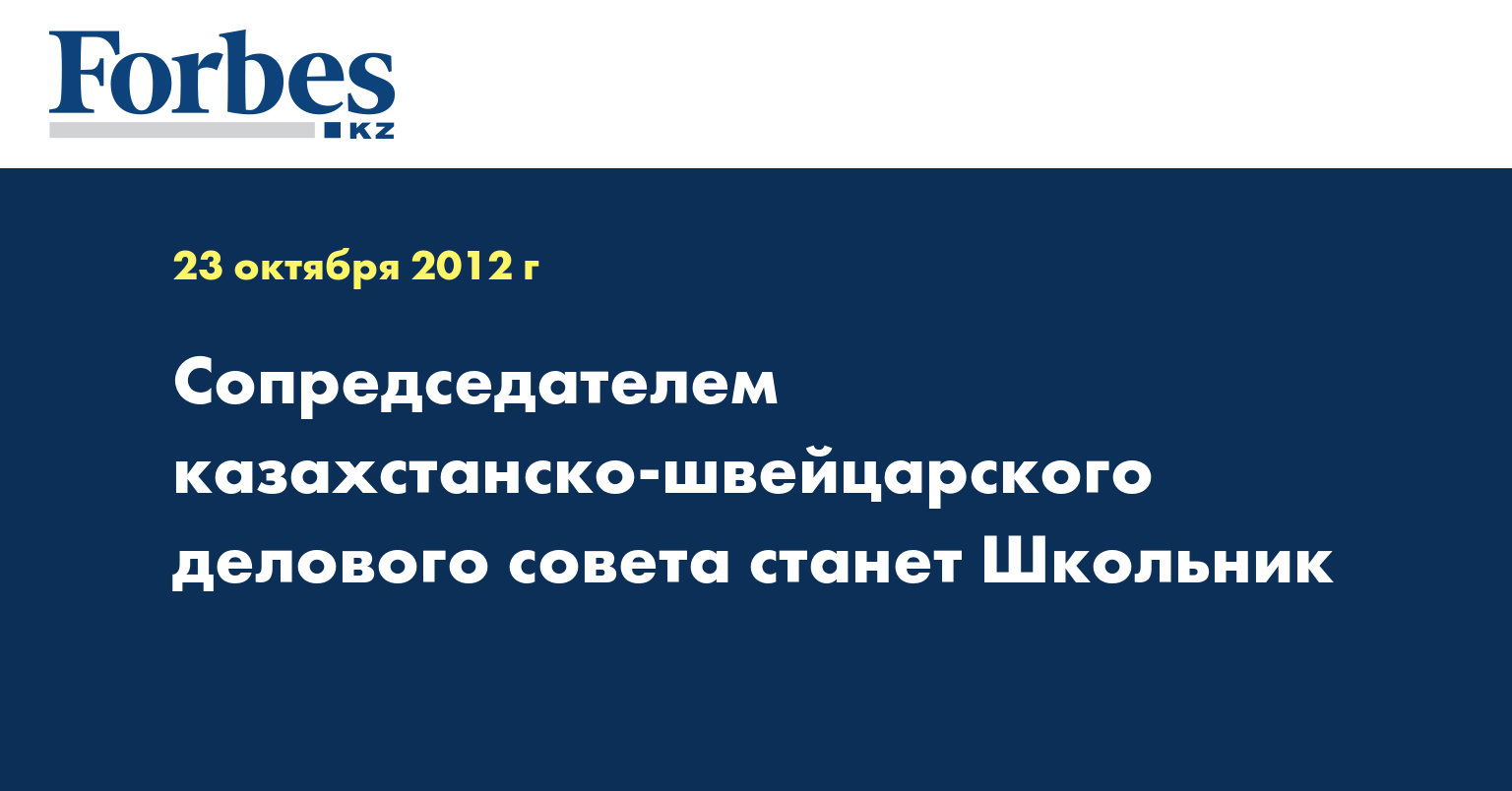 «Владимир Школьник станет сопредседателем казахстанско-швейцарского делового совета», - говорится в сообщении, распространенном во вторник, которое цитирует КазТАГ.