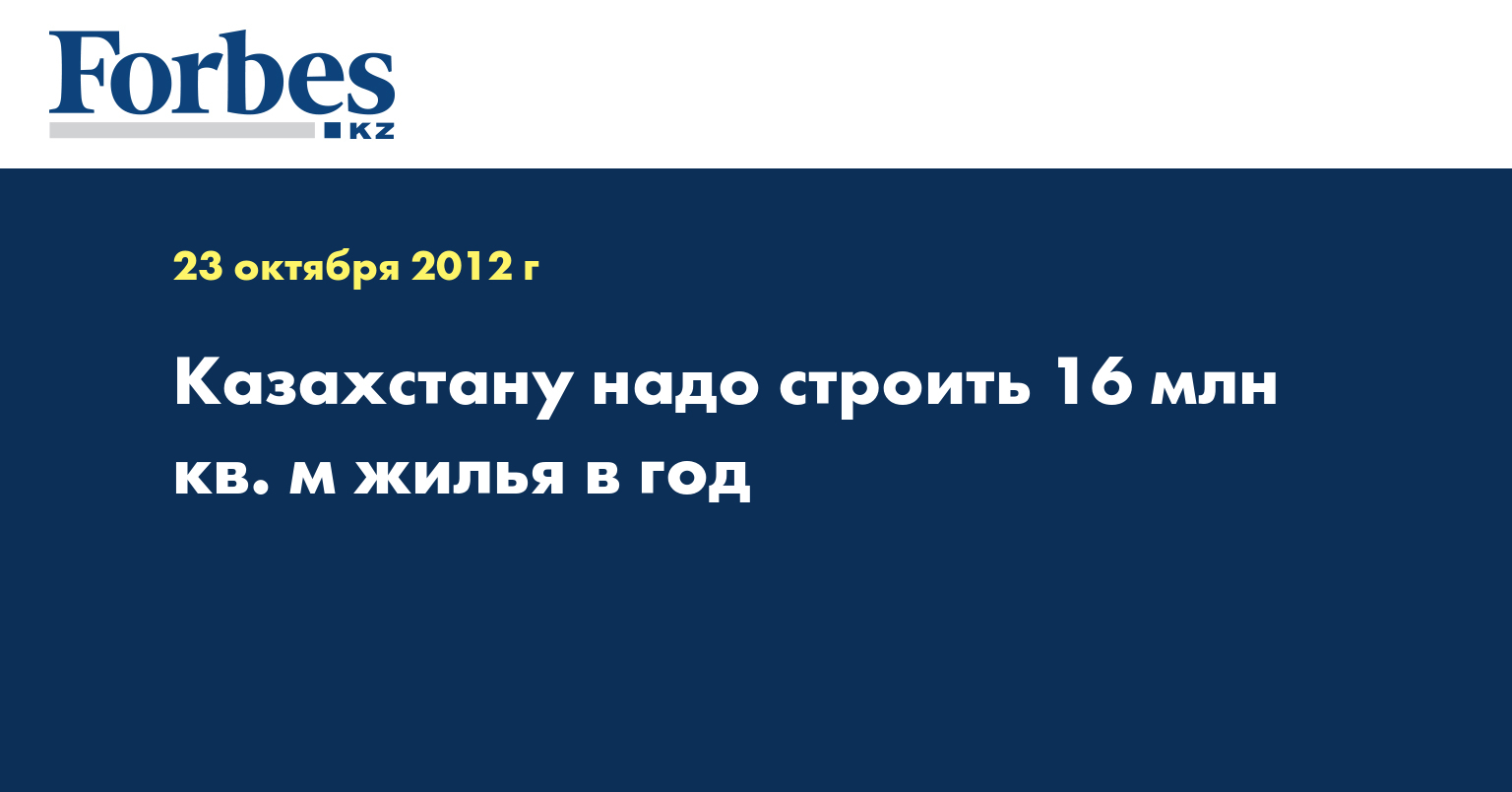 «Есть нормативы для цивилизованного государства по вводу квадратных метров жилья из расчета на одного жителя. В США это примерно 2 квадратных метра в год на одного жителя, в Европе – 1,5. Если мы говорим, что цивилизованная страна, то критерием должно быть не менее одного квадратного метра жилья на каждого жителя. Значит, Казахстан ставит задачу 6 млн кв. м жилья в год, а надо строить 16 млн», - сказал В. Коновалов во вторник на заседании клуба «Эксперт» на тему «Доступное жилье-2020».
