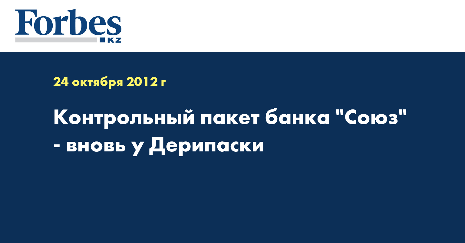 На данный момент "Ингосстрах" владеет почти 50 процентами акций "Союза". Аукцион на продажу пятидесяти процентов и одной акции банка, принадлежащих АСВ, был объявлен в сентябре 2012 года. Структура Дерипаски предложила 2,815 миллиарда рублей при установленной стартовой цене пакета в 2,8 миллиарда рублей. Согласно условиям конкурса, покупатель должен оплатить пакет акций в течение десяти дней.