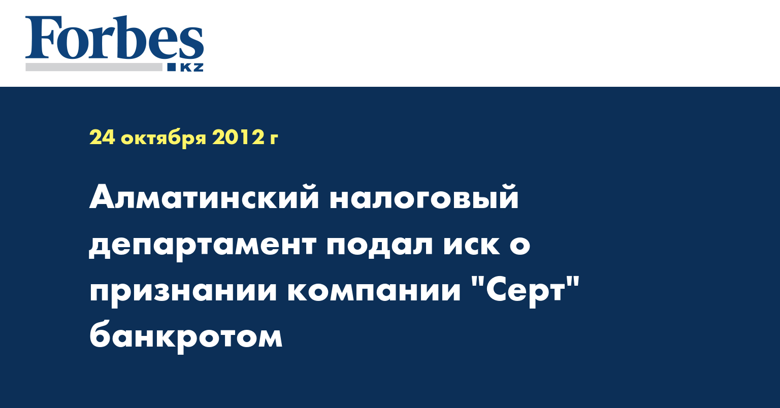 Налоговый департамент по Алматы подал в городской специализированный межрайонный экономический суд (СМЭС) иск в отношении АО «Серт» о признании должника банкротом, сообщила КазТАГ инициативная группа дольщиков жилого комплекса (ЖК) «Жайлы» строительной компании «Серт».