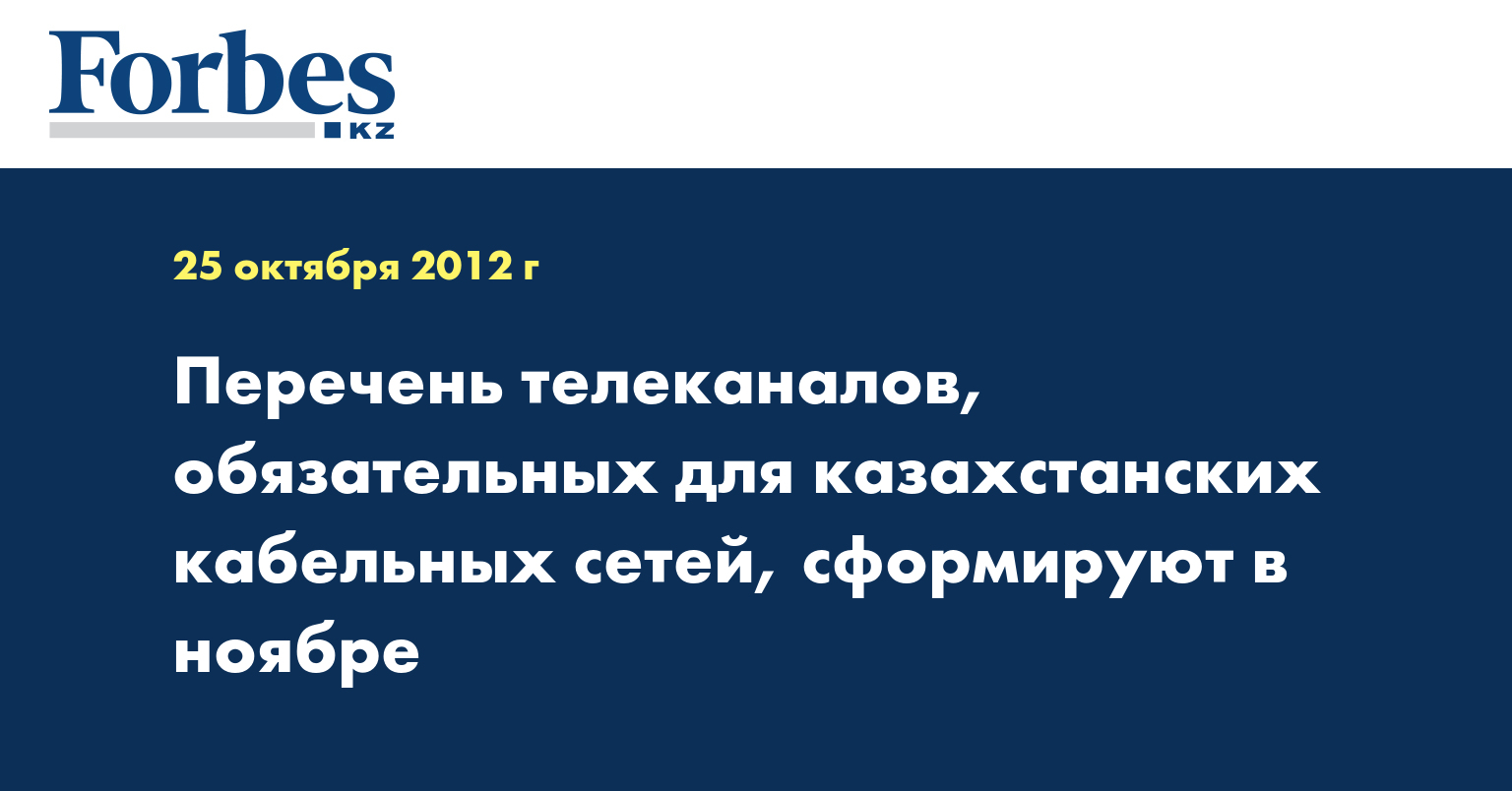 Перечень телеканалов, обязательных к распространению в кабельных сетях Казахстана, будет сформирован в ноябре, сообщил вице-министр культуры и информации РК Арман Кырыкбаев, передает КазТАГ.