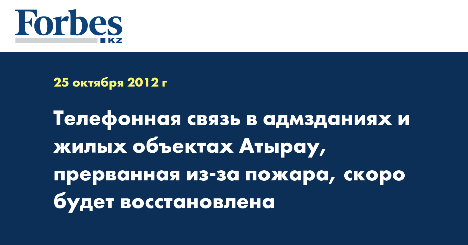 Телефонная связь в административных зданиях и жилых объектах Атырау, прерванная из-за пожара на подстанции, будет восстановлена в течение нескольких часов, сообщили в департаменте по чрезвычайным ситуациям (ДЧС) по Атырауской области, передает КазТАГ.