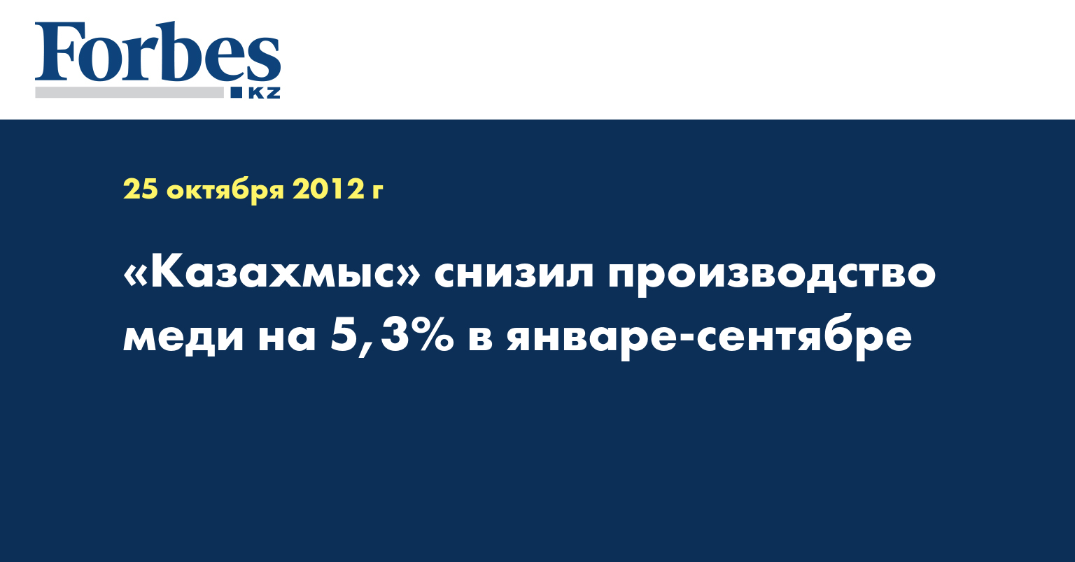 Группа «Казахмыс» в январе-сентябре произвела 214,9 тыс. тонн меди в катодном эквиваленте, что на 5,3% меньше, чем за аналогичный период 2011 года, указывается в сообщении компании, поступившем в КазТАГ.