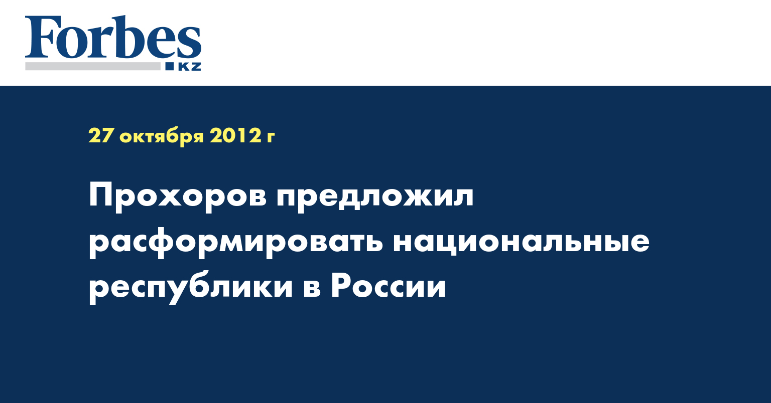 Бизнесмен Михаил Прохоров поставил под сомнение эффективность существования в составе России национальных республик, сообщает "Лента.ру" со ссылкой на РИА Новости. Заявление прозвучало в субботу, 27 октября, на съезде основанной Прохоровым партии "Гражданская платформа".