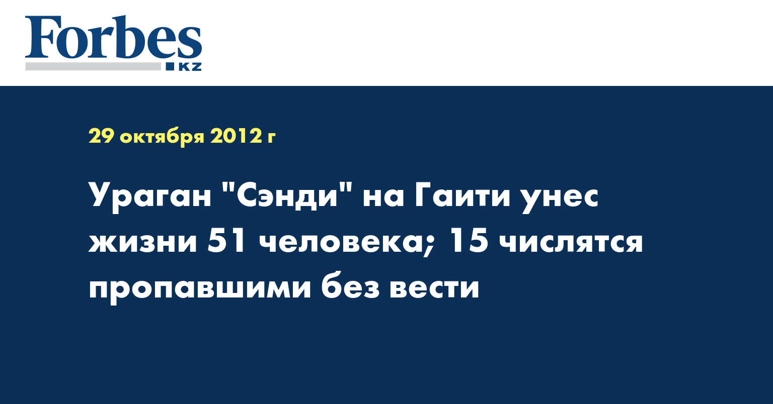 На минувшей неделе ураган "Сэнди" нанес серьезный ущерб островным государствам Карибского бассейна, в том числе Багамам, Гаити, Доминиканской Республике, Кубе, Ямайке. От удара стихии в этом регионе погибли более 70 человек.