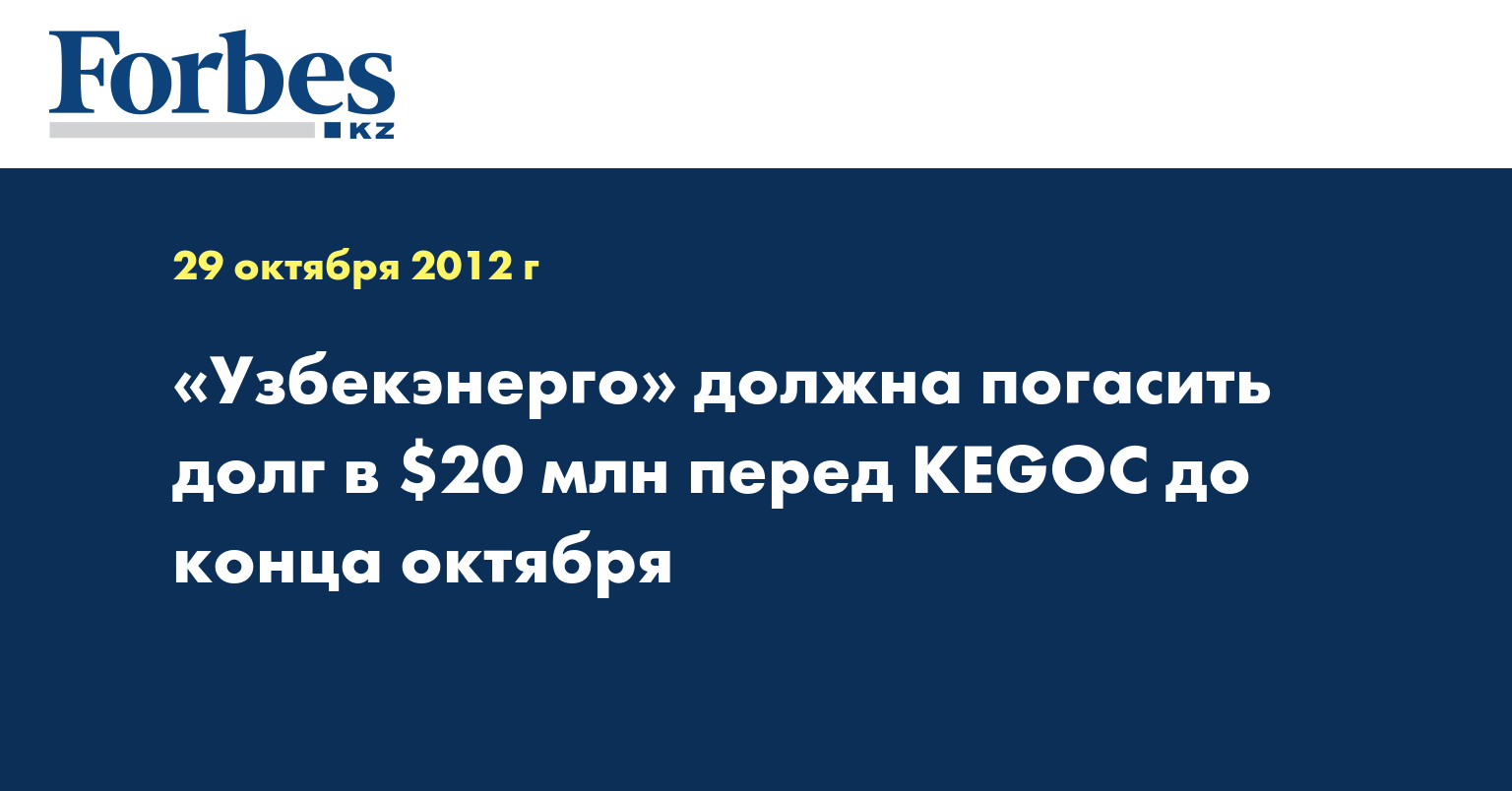 В соответствии с договором, «Узбекэнерго» обязан выплатить всю сумму долга до 30 октября 2012 года.