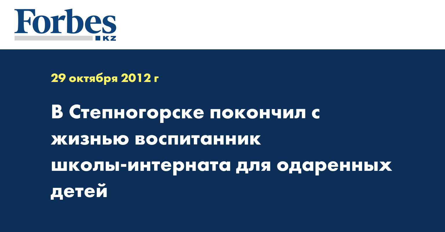 Несовершеннолетний воспитанник Степногорской школы-интерната для одаренных в спорте детей покончил жизнь самоубийством, сообщили в пресс-службе ДВД Акмолинской области.