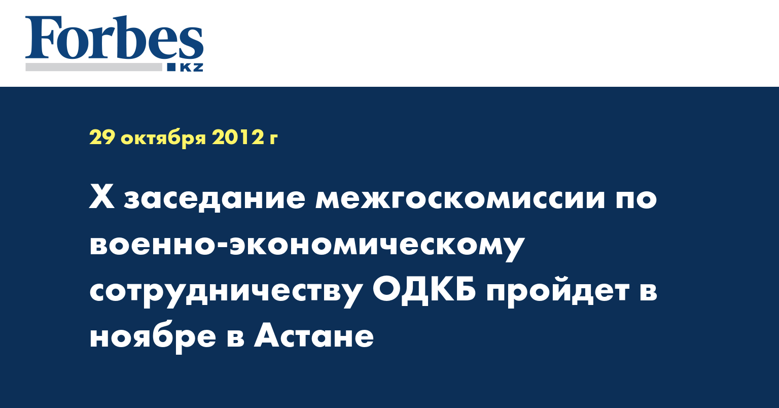 Х юбилейное заседание межгосударственной комиссии по военно-экономическому сотрудничеству (МКВЭС) Организации договора о коллективной безопасности (ОДКБ) состоится 1 ноября текущего года в Астане, сообщила пресс-служба Организации.