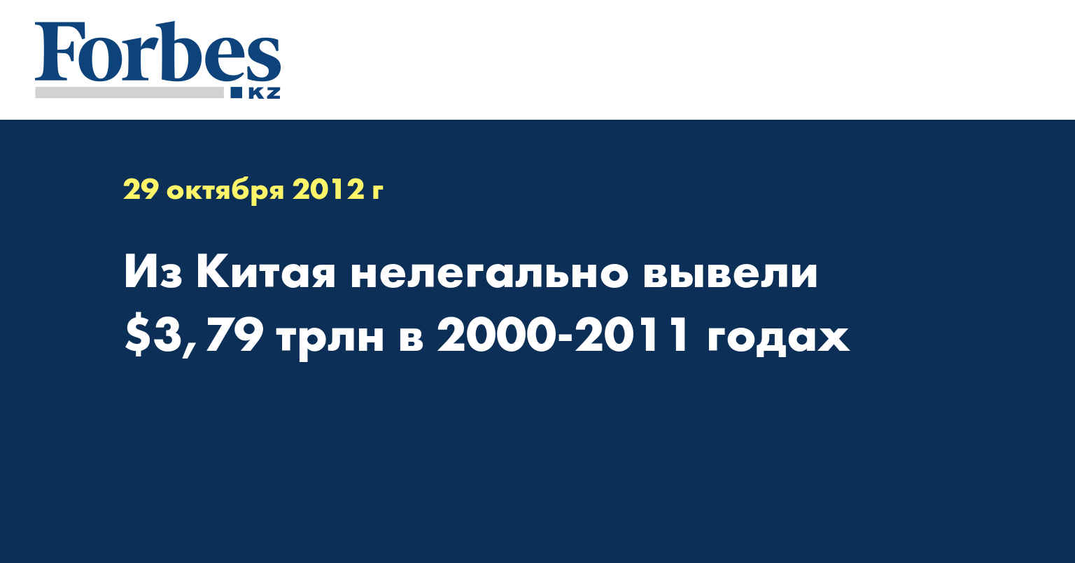 «Из китайской экономики нелегально выведено $3,79 трлн в период с 2000 по 2011 годы», - говорится в докладе GFI, как передает КазТАГ.